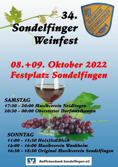 Unsere Blasmusik lädt alle Einwohner und Gönner zum Sondelfinger Weinfest ein.